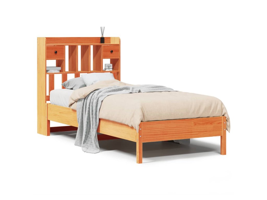 Postel s knihovnou bez matrace hnědá 75x190 cm masivní borovice 3322935