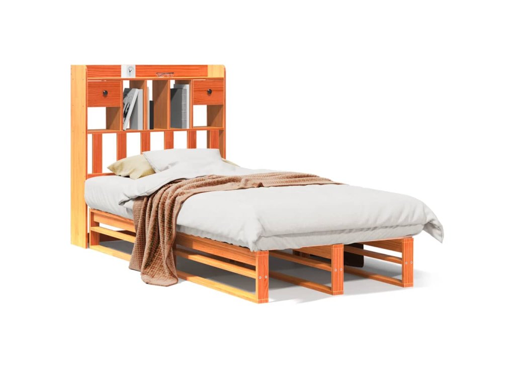 Postel s knihovnou bez matrace hnědá 75x190 cm masivní borovice 3323976