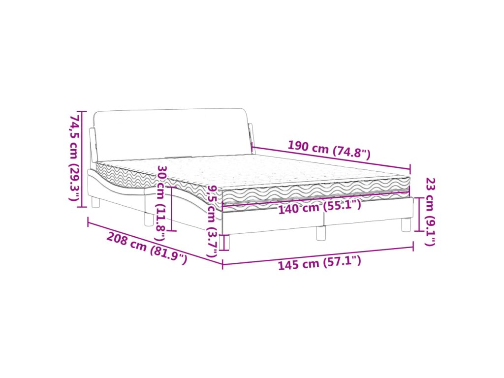 - Celkové rozměry: 208 x 145 x 74,5 cm (D x Š x V)
