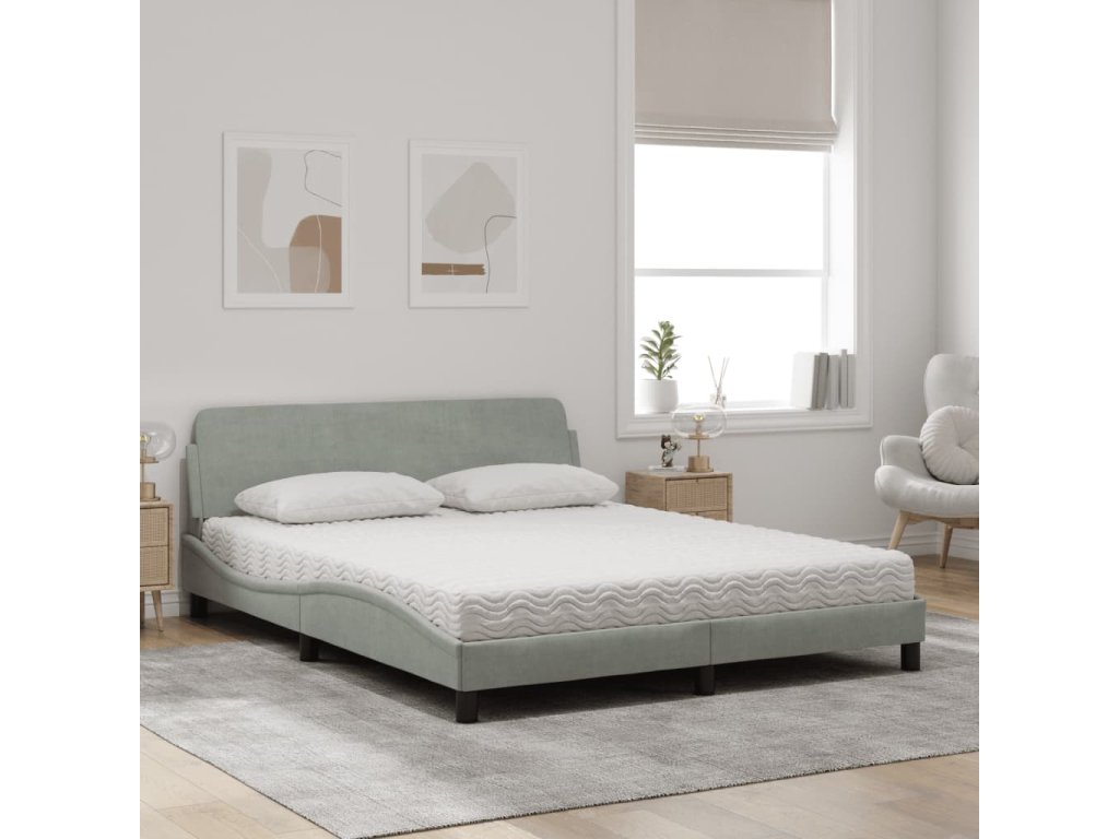 Postel s matrací Dover světle šedá 160 x 200 cm samet 3208431