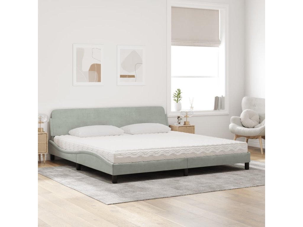 Postel s matrací Dover světle šedá 200 x 200 cm samet 3208471