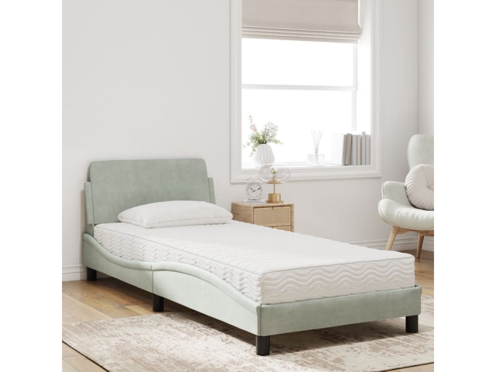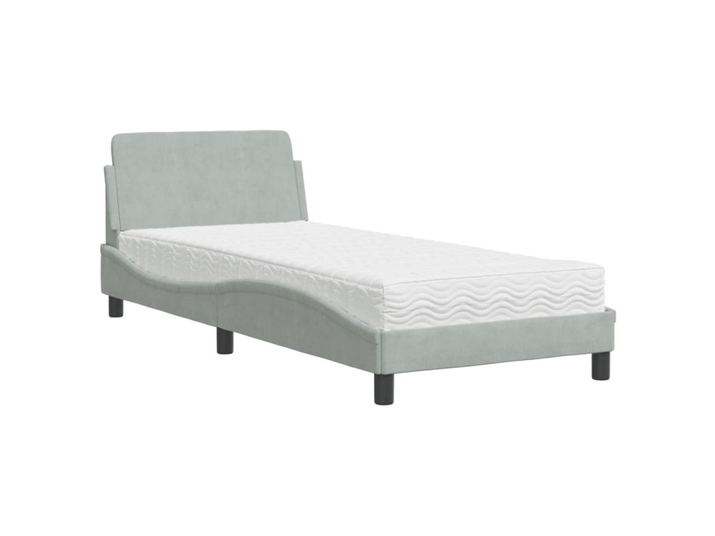Postel s matrací Dover světle šedá 90 x 190 cm samet 3208311