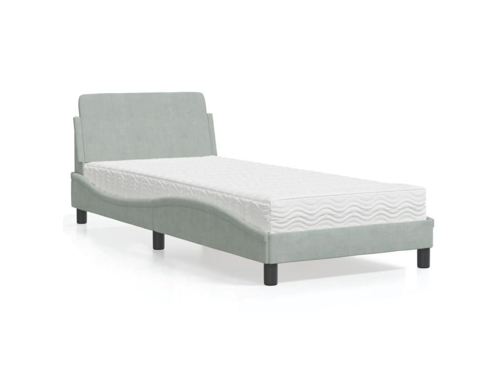 Postel s matrací Dover světle šedá 90 x 200 cm samet 3208331