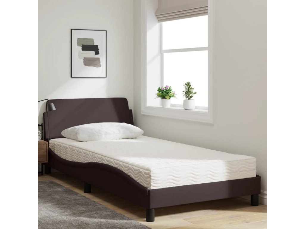 Postel s matrací Dover tmavě hnědá 100 x 200 cm textil 3208347
