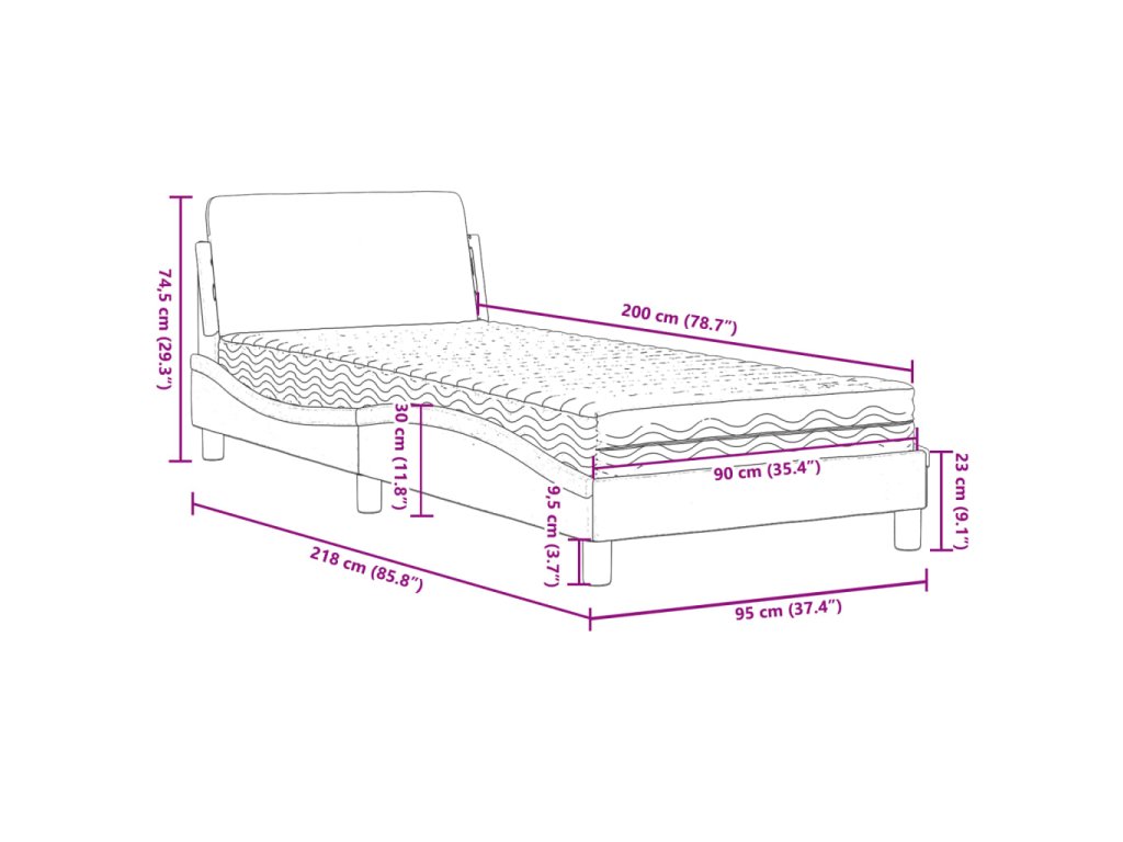 - Celkové rozměry: 218 x 95 x 74,5 cm (D x Š x V)