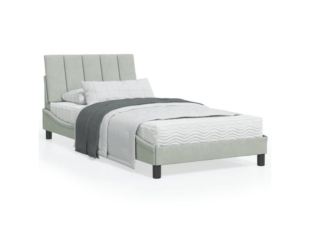 Postel s matrací Hanko světle šedá 100 x 200 cm samet 3208580