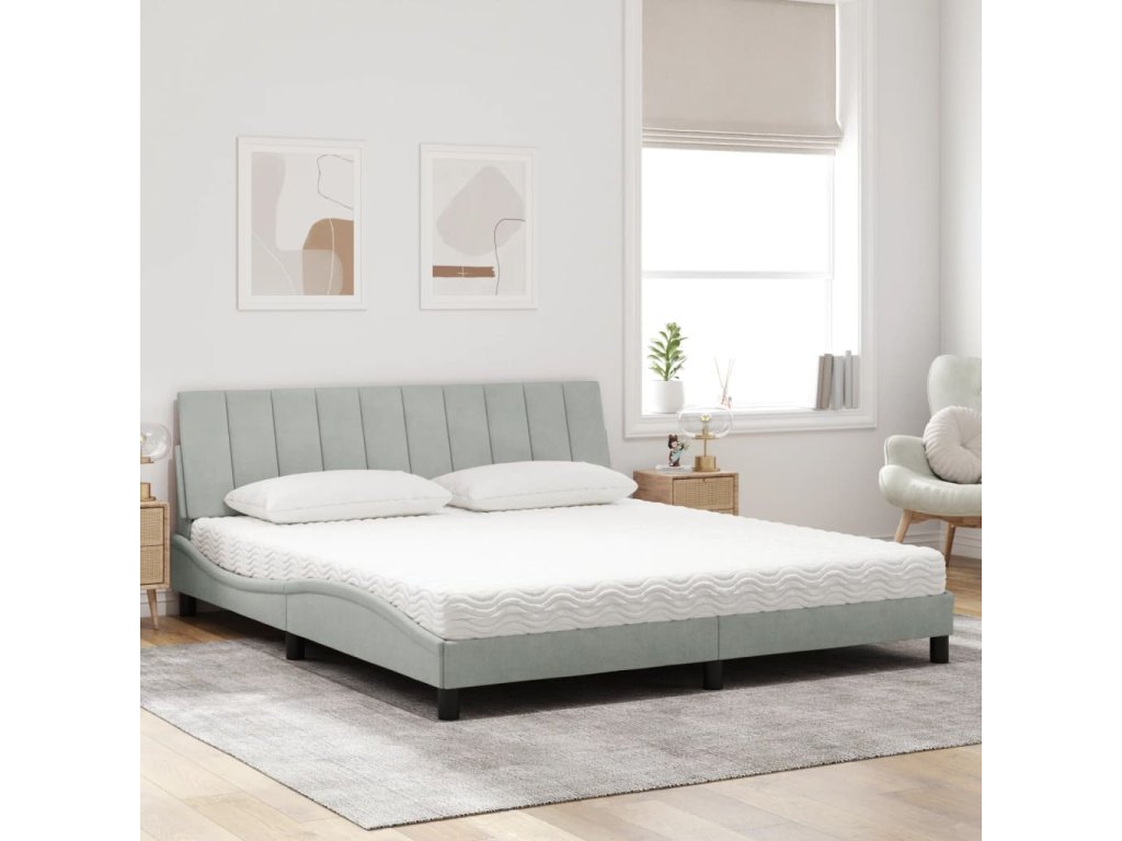 Postel s matrací Hanko světle šedá 180 x 200 cm samet 3208610