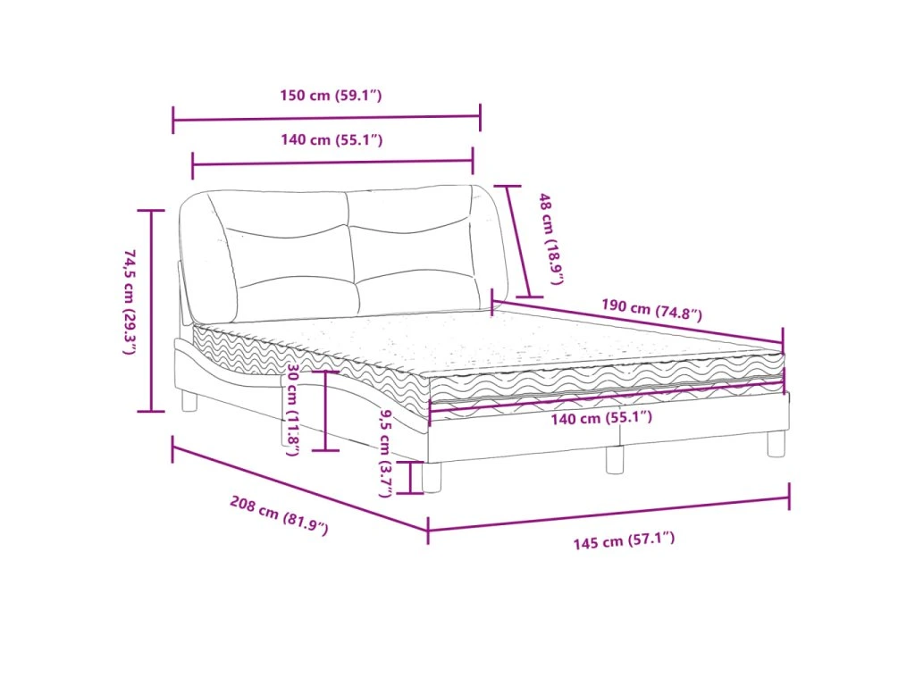 - Vlnitý boční design: Vlnitý vzhled postelového rámu je stylový a sofistikovaný, takže vašemu interiéru propůjčí moderní a elegantní nádech a stane se ústředním bodem vaší ložnice.