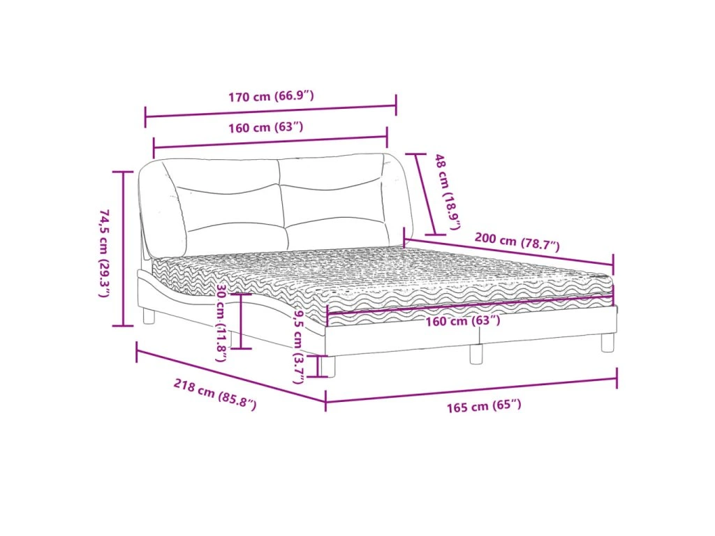 - Vlnitý boční design: Vlnitý vzhled postelového rámu je stylový a sofistikovaný, takže vašemu interiéru propůjčí moderní a elegantní nádech a stane se ústředním bodem vaší ložnice.