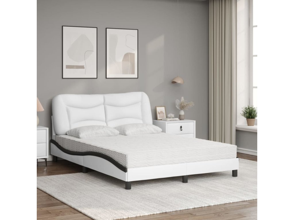 Postel s matrací Hvar bílá a černá 140 x 190 cm umělá kůže 3208723