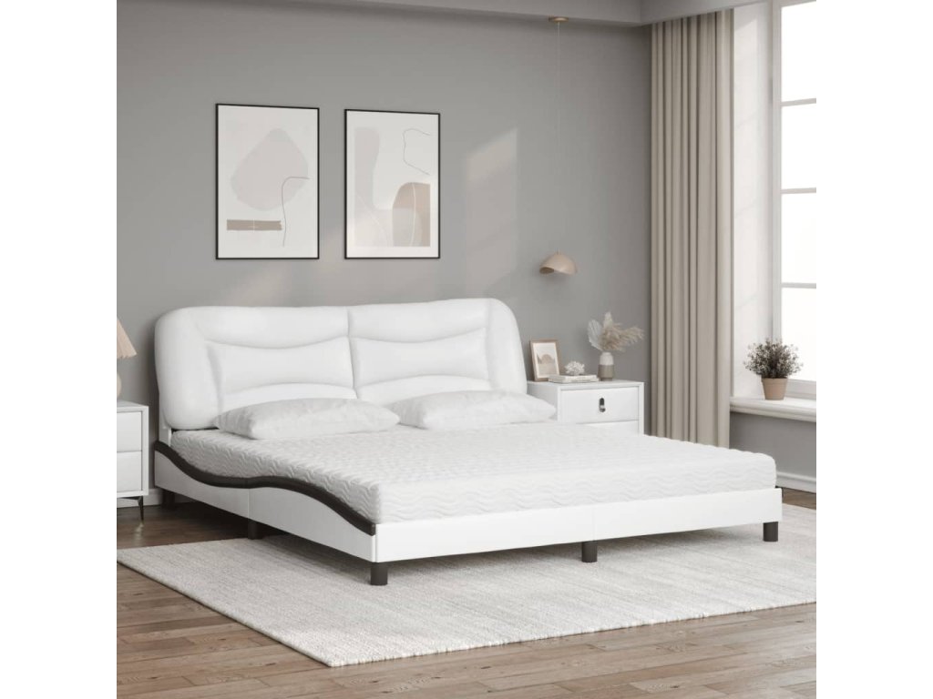 Postel s matrací Hvar bílá a černá 180 x 200 cm umělá kůže 3208744