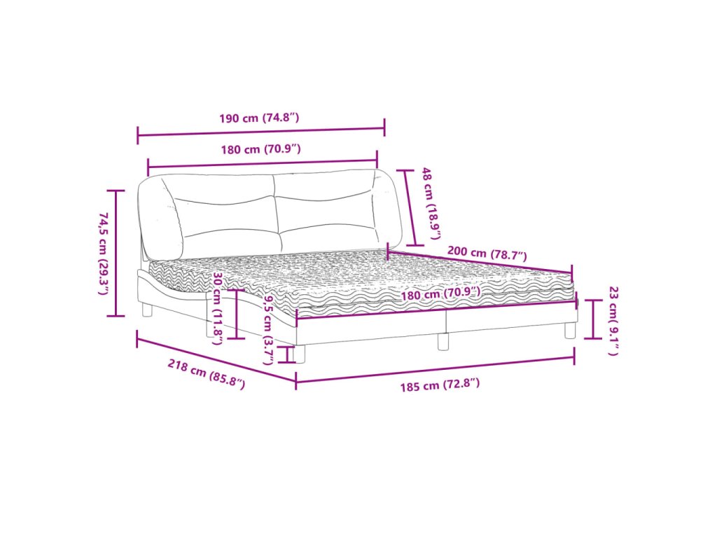 - Vlnitý boční design: Vlnitý vzhled postelového rámu je stylový a sofistikovaný, takže vašemu interiéru propůjčí moderní a elegantní nádech a stane se ústředním bodem vaší ložnice.