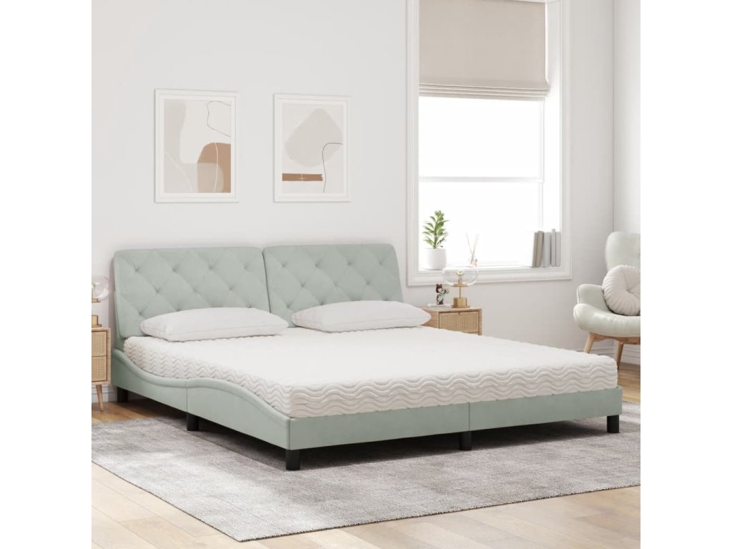 Postel s matrací světle šedá 180 x 200 cm samet 3208670