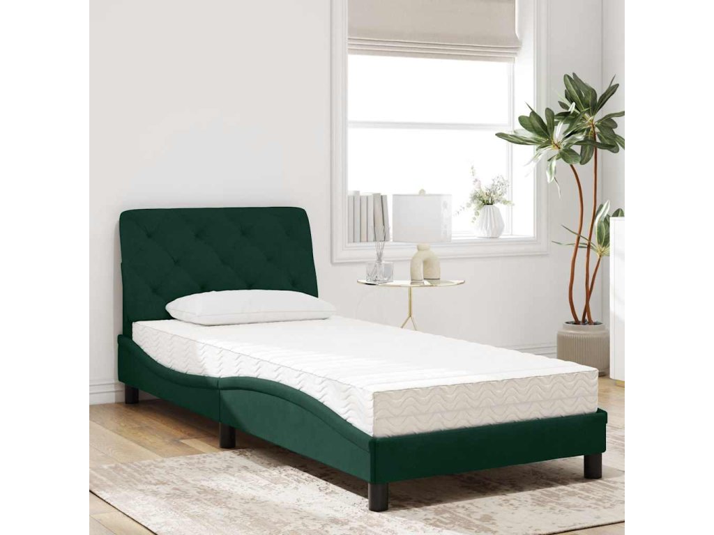 Postel s matrací tmavě zelená 90 x 190 cm samet 3208631