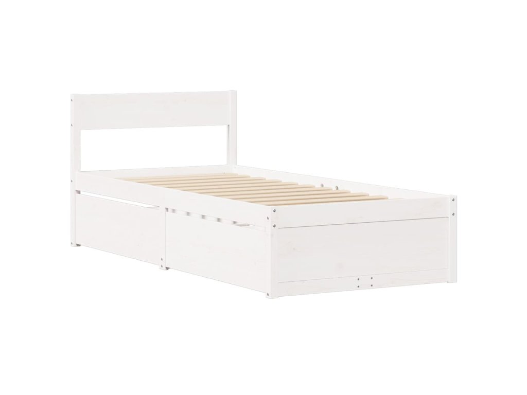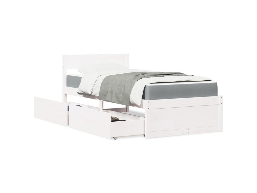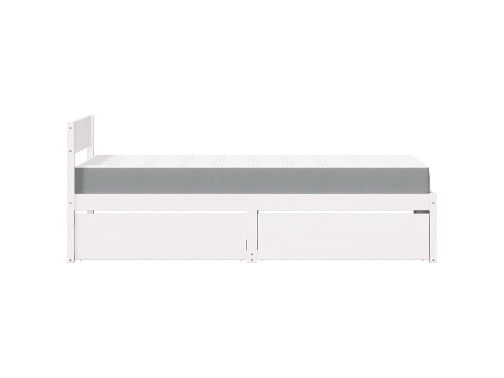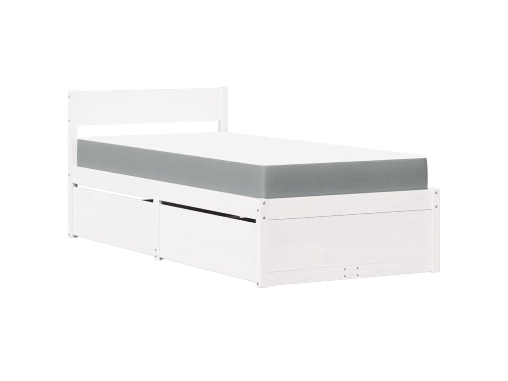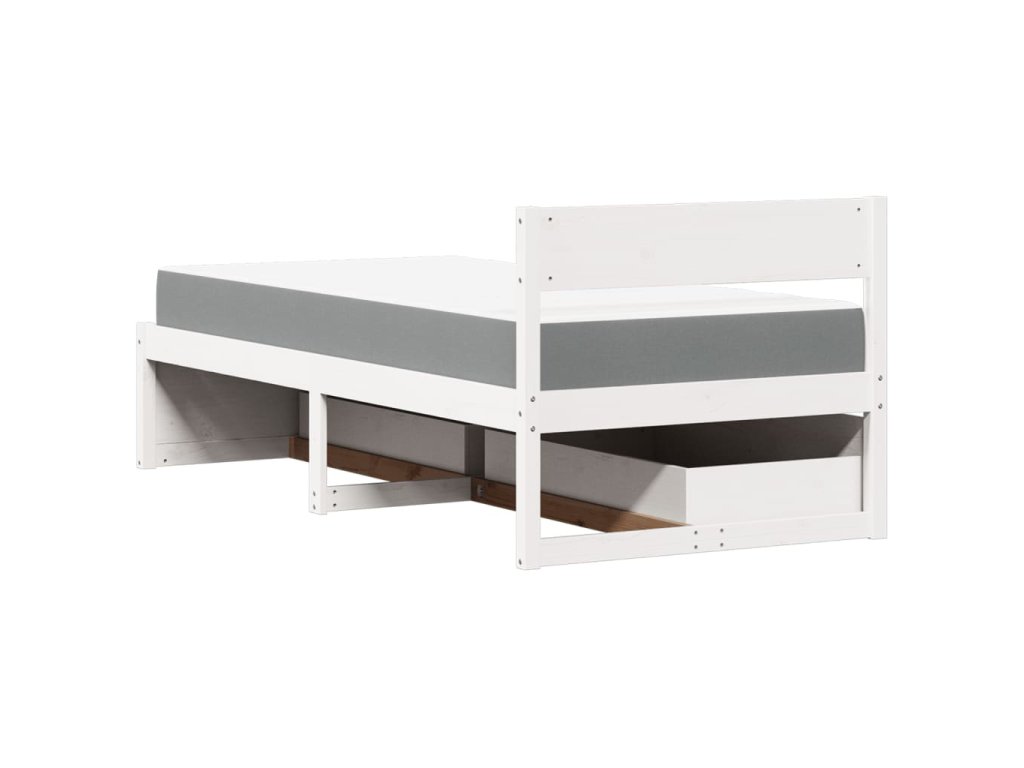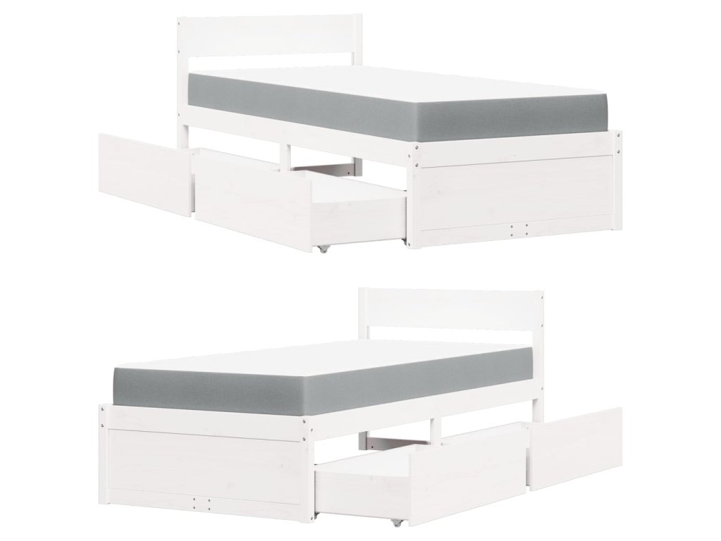 Postel se zásuvkami a matrací bílá 90 x 200 cm masivní borovice 3281908