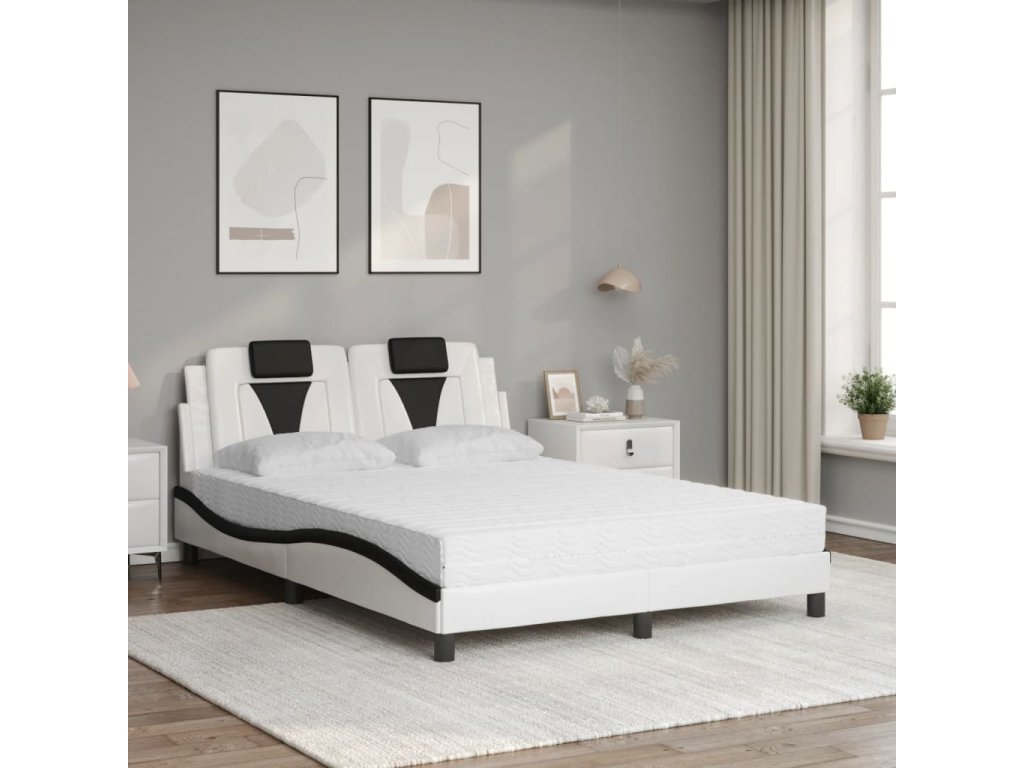 Postel Viana s matrací bílá a černá 140 x 190 cm umělá kůže 3208795
