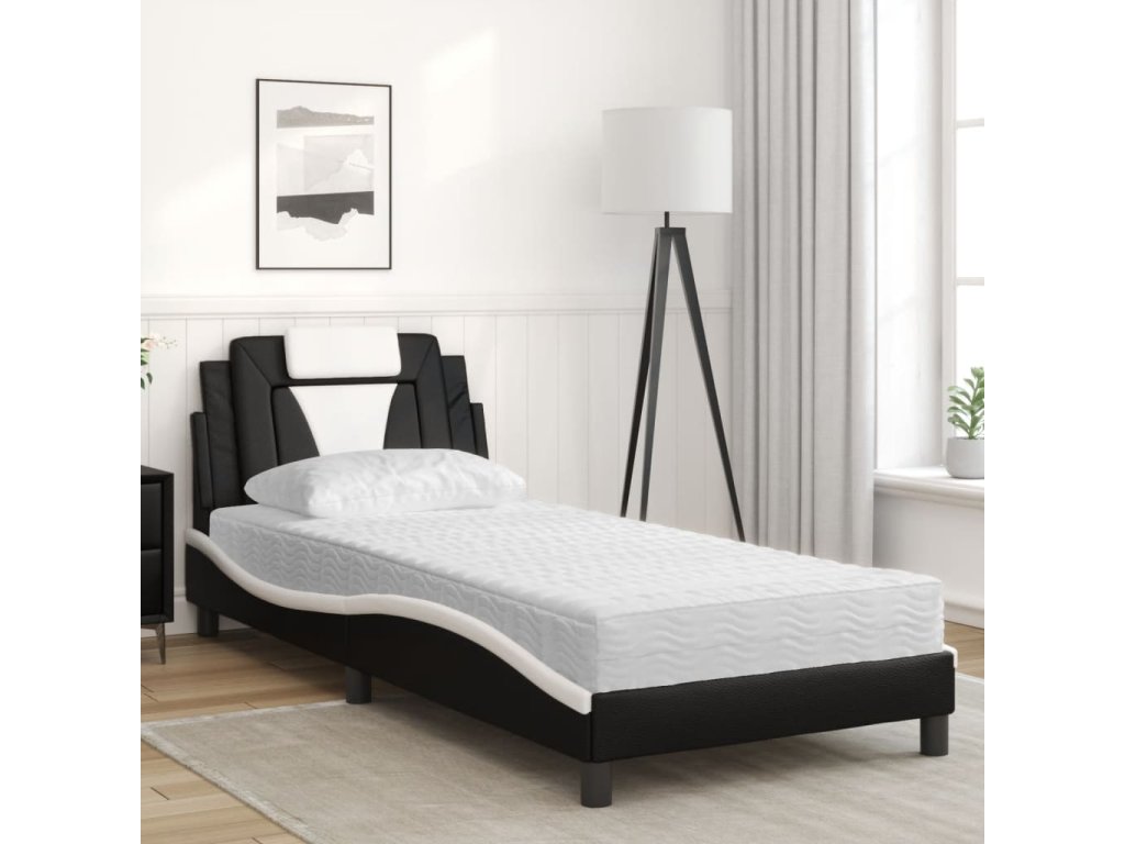 Postel Viana s matrací černá a bílá 90 x 190 cm umělá kůže 3208766