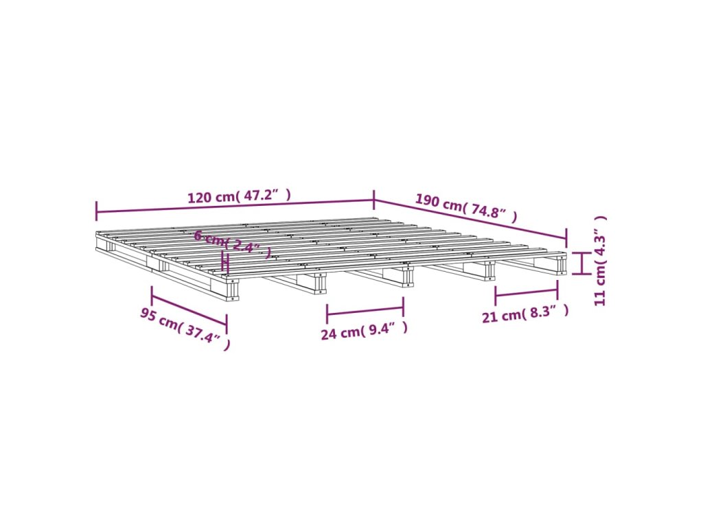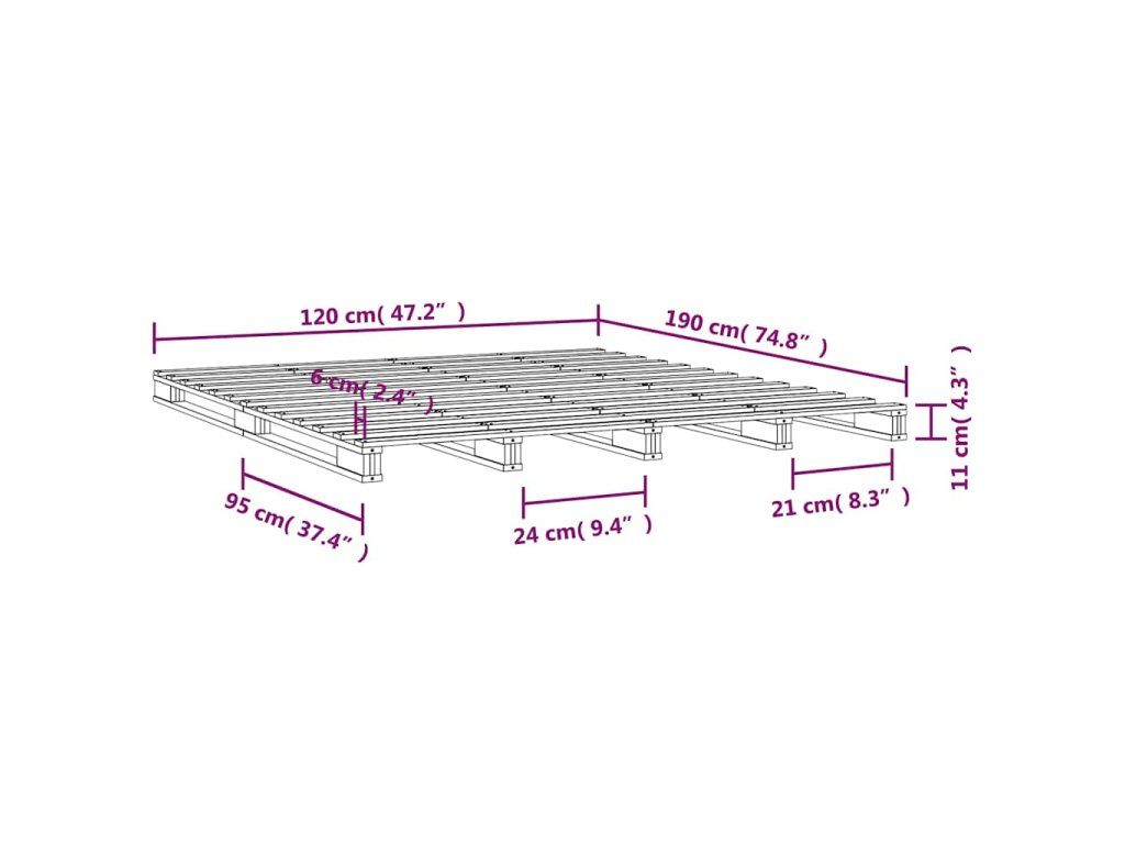 Postel z palet 120 x 190 cm masivní borovice Small Double 821427