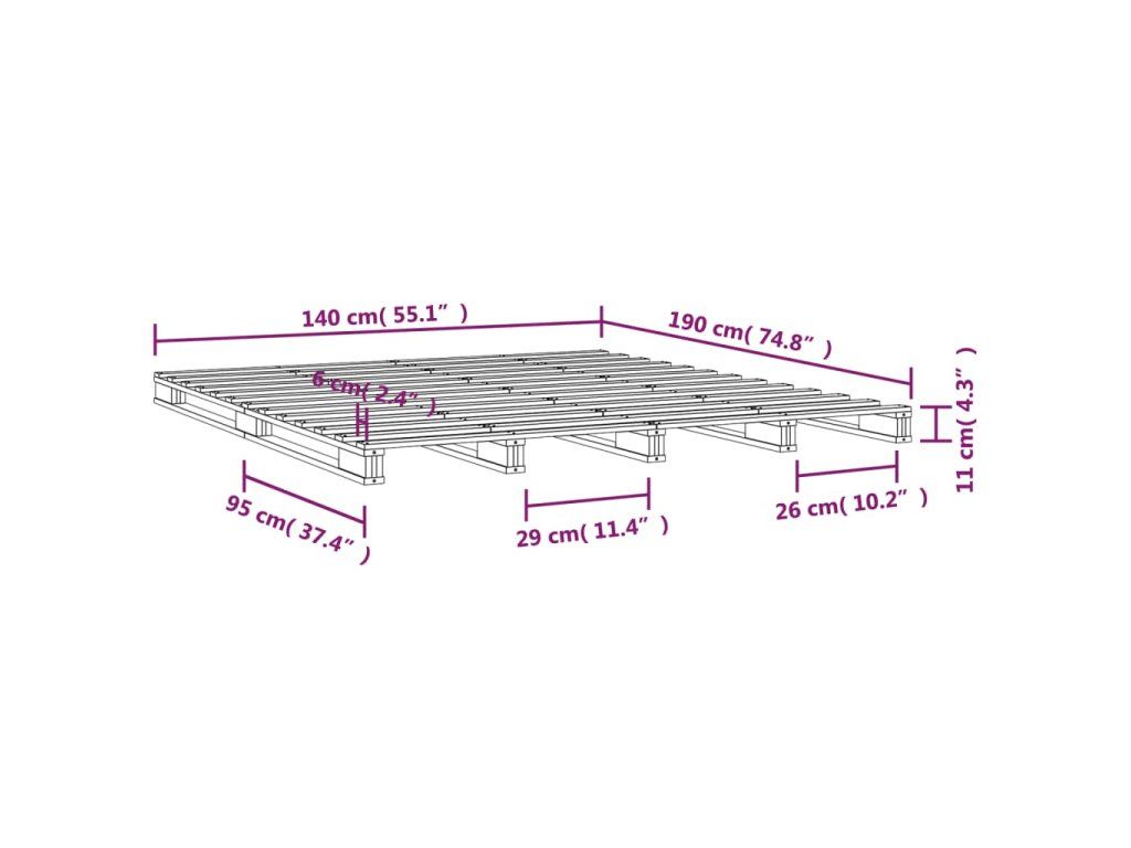 Postel z palet 140 x 190 cm masivní borové dřevo 821437