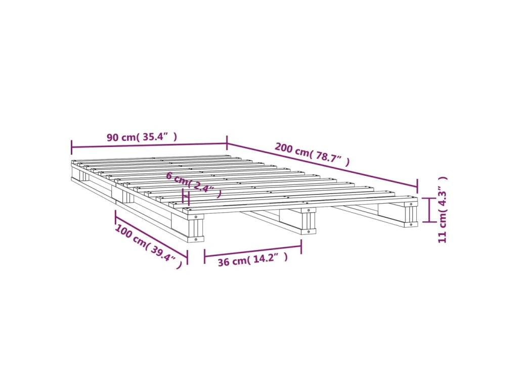 Postel z palet bílá 90 x 200 cm masivní borové dřevo 821378