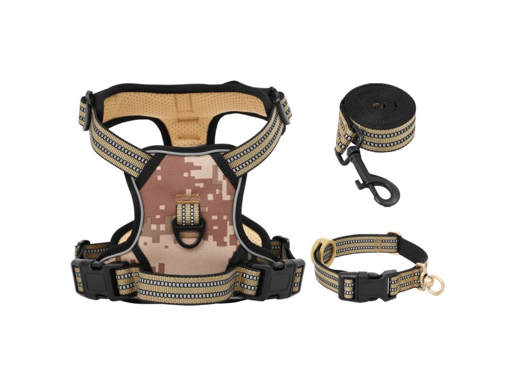 Postroj pro psy vodítko obojek nastavitelný maskáčový hnědý XL 4013398