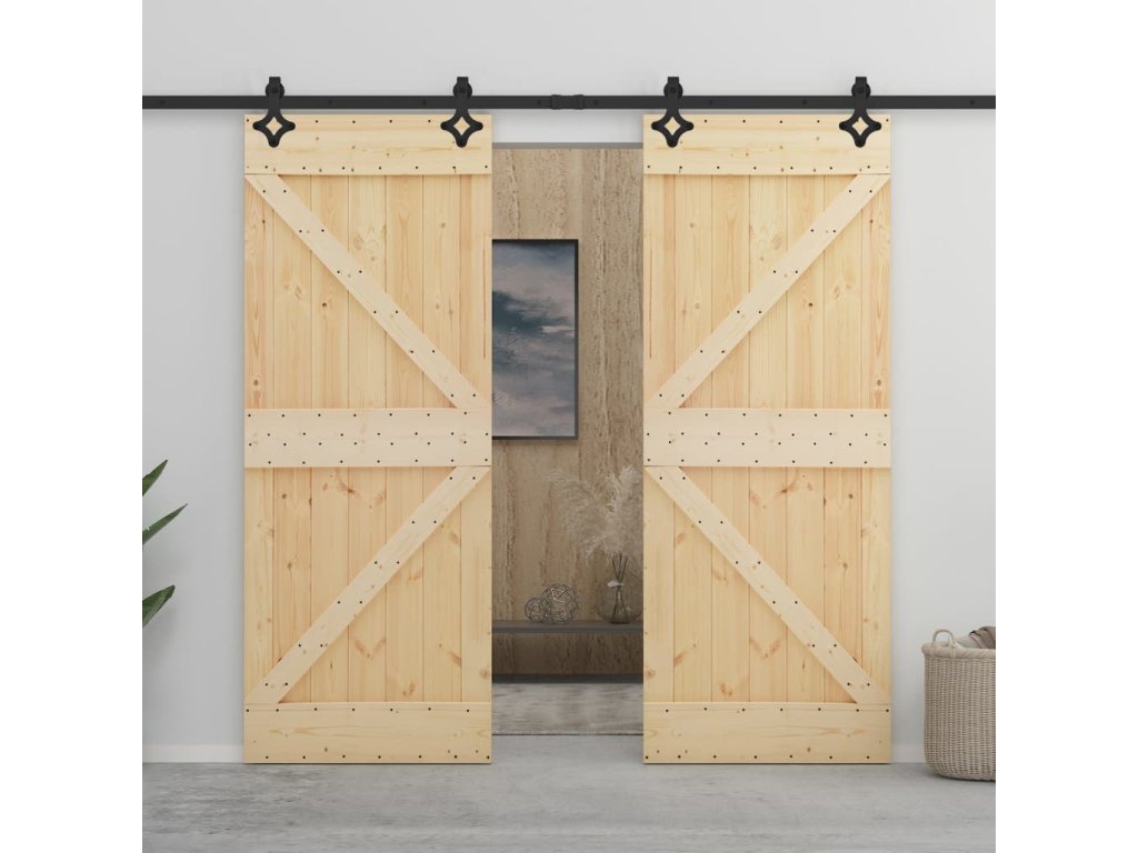 Posuvné dveře se setem kování 100 x 210 cm masivní borové dřevo 3057597