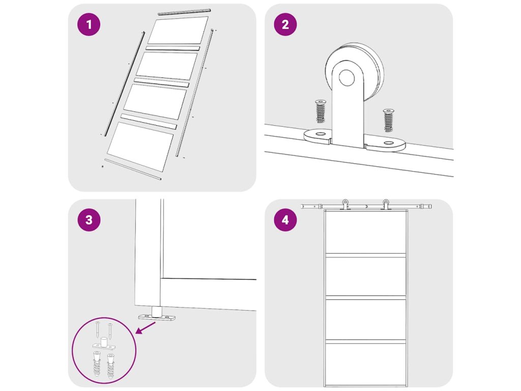- Způsob instalace je vysvětlen v našem instalačním manuálu ke dveřím a sadám příslušenství.