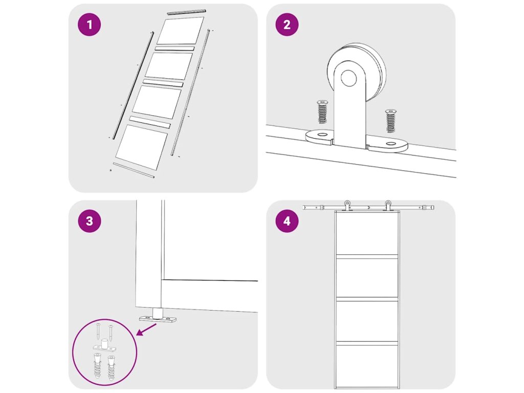 - Způsob instalace je vysvětlen v našem instalačním manuálu ke dveřím a sadám příslušenství.