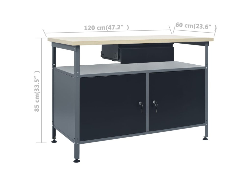 Velmi odolný pracovní stůl s velkým úložným prostorem má nosnost 300 kg. Tento pracovní stůl má otevřenou přihrádku se zásuvkou, kam si můžete dobře uspořádat své nářadí, díly a příslušenství, jako jsou šrouby, hřebíky a lepicí pásky. Za uzamykatelnými dvířky jsou 2 police a velká přihrádka pro větší nástroje, jako jsou vrtačky, bubny s kabely a brusky. Výškově nastavitelné nohy vám umožňují přizpůsobit si výšku stolu. Celý ponk je vyrobený z prvotřídní oceli a kompozitního dřeva, a proto je mimořádně robustní, má dlouhou životnost a snadno se čistí. Jeho sestavení je snadné.