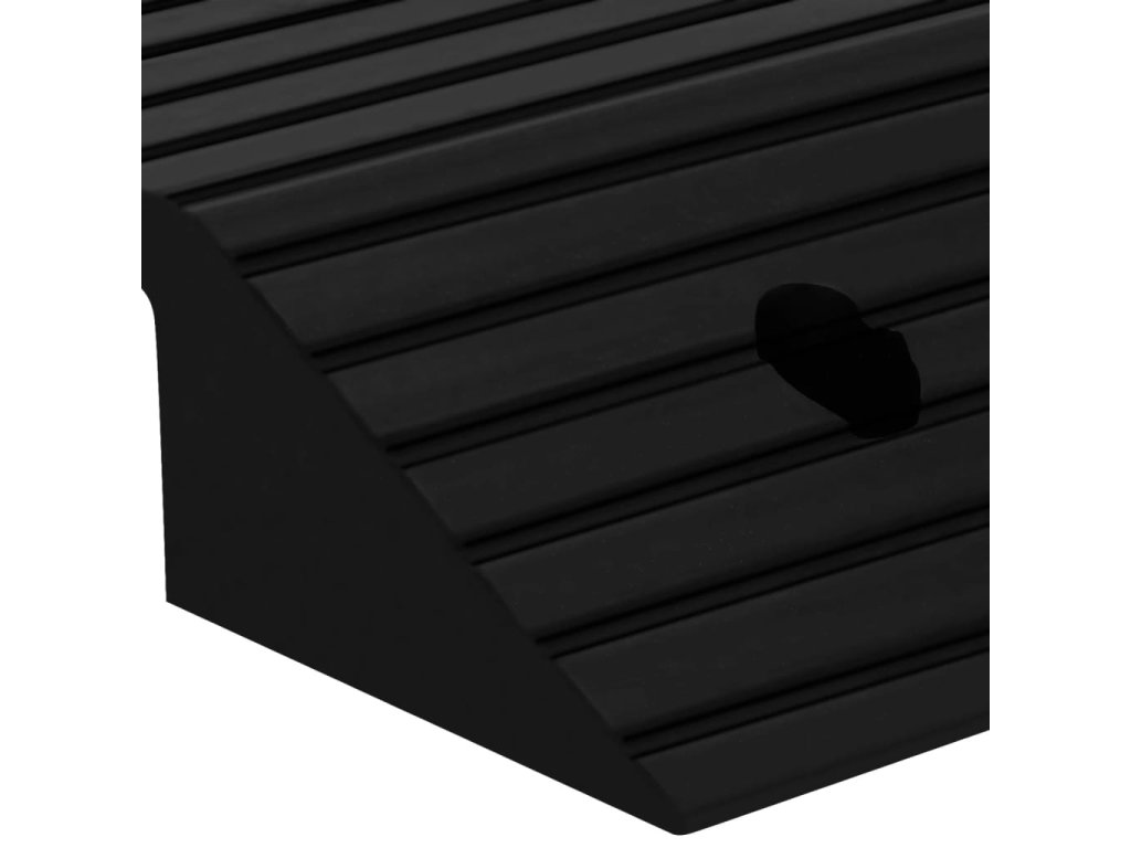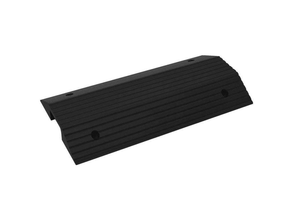 Přejezdová rampa je vyrobena z pevné pryže, je lehká a dostatečně odolná pro dlouhodobé používání. Drsný povrch má protiskluzovou strukturu, která pomáhá zabránit uklouznutí při nájezdu.