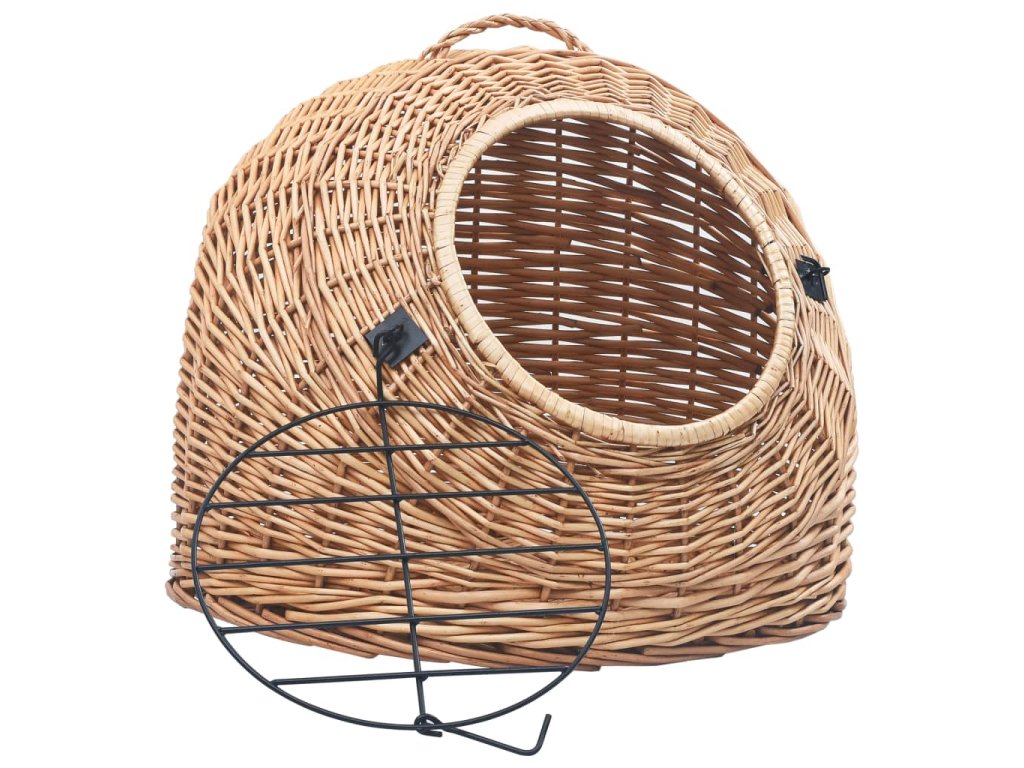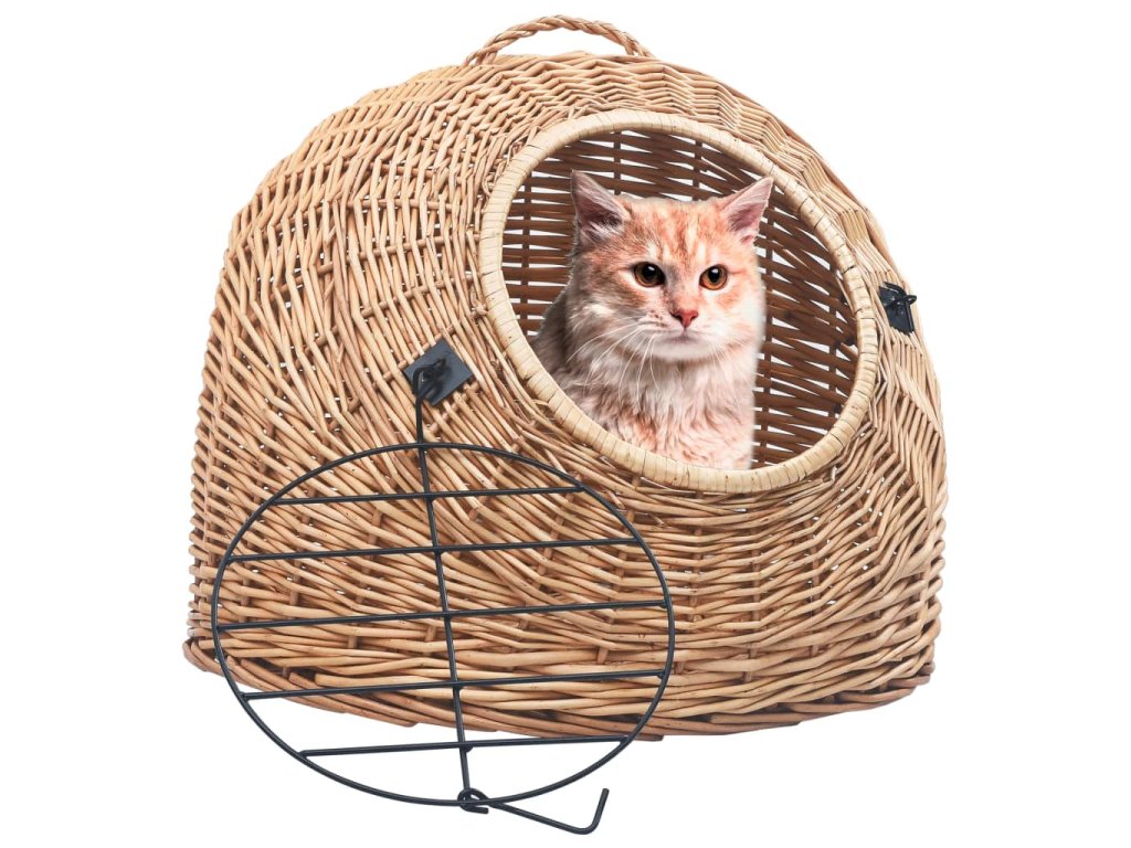 Košík pro kočku je vyrobený z přírodního vrbového proutí a poskytne vašim malým kamarádům možnost odpočívat a škrábat, co hrdlo ráčí. Odolná dvířka zajistí vašim mazlíčkům na cestách bezpečí. Na horní straně přepravky se nachází proutěné ucho, takže se vám nejen pohodlně ponese, ale můžete ji také někam zavěsit a postarat se tak svému kočičímu společníkovi o spoustu zábavy.
