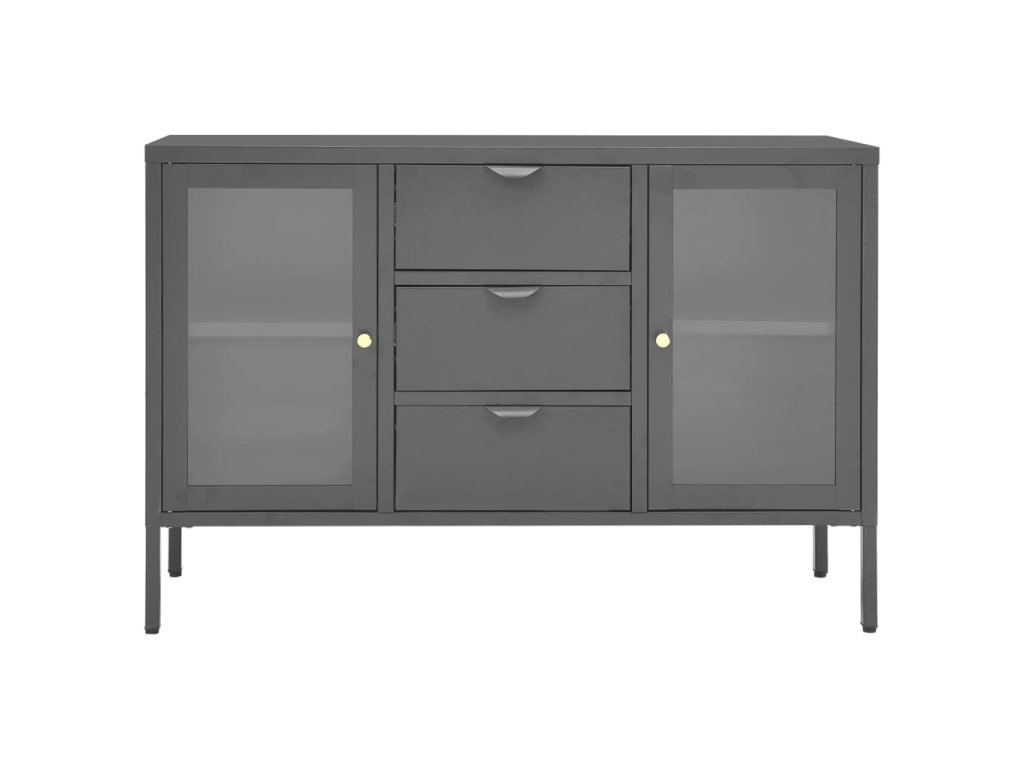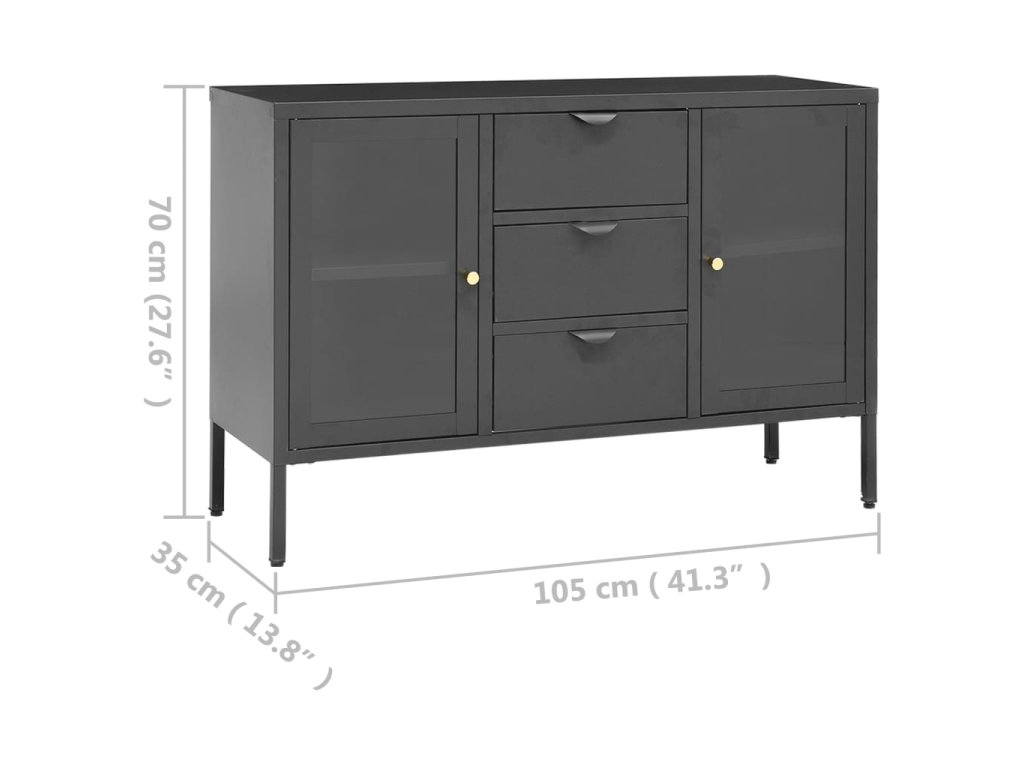 Příborník antracitový 105 x 35 x 70 cm ocel a tvrzené sklo 336078