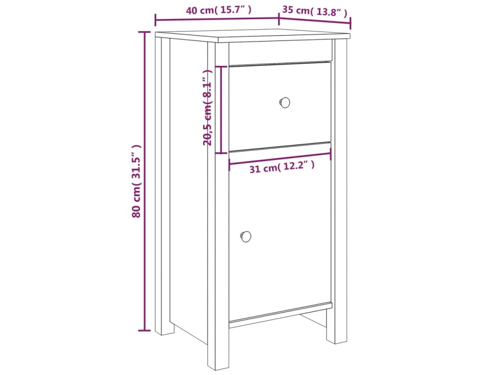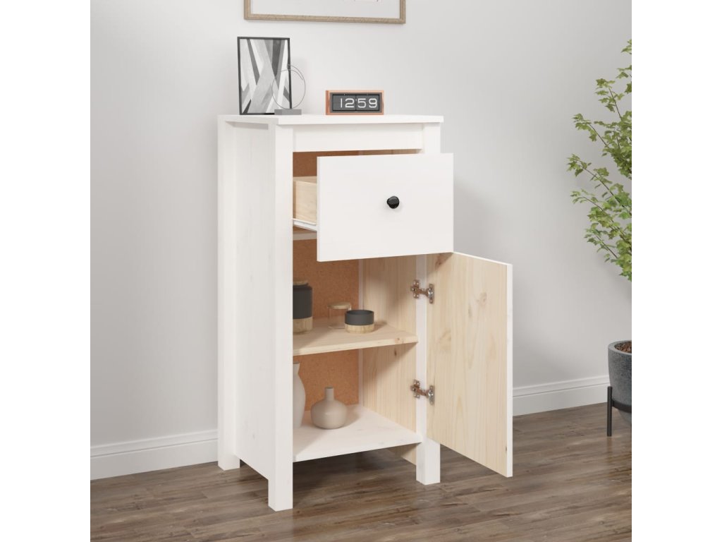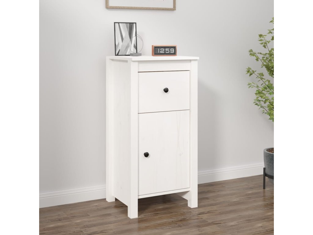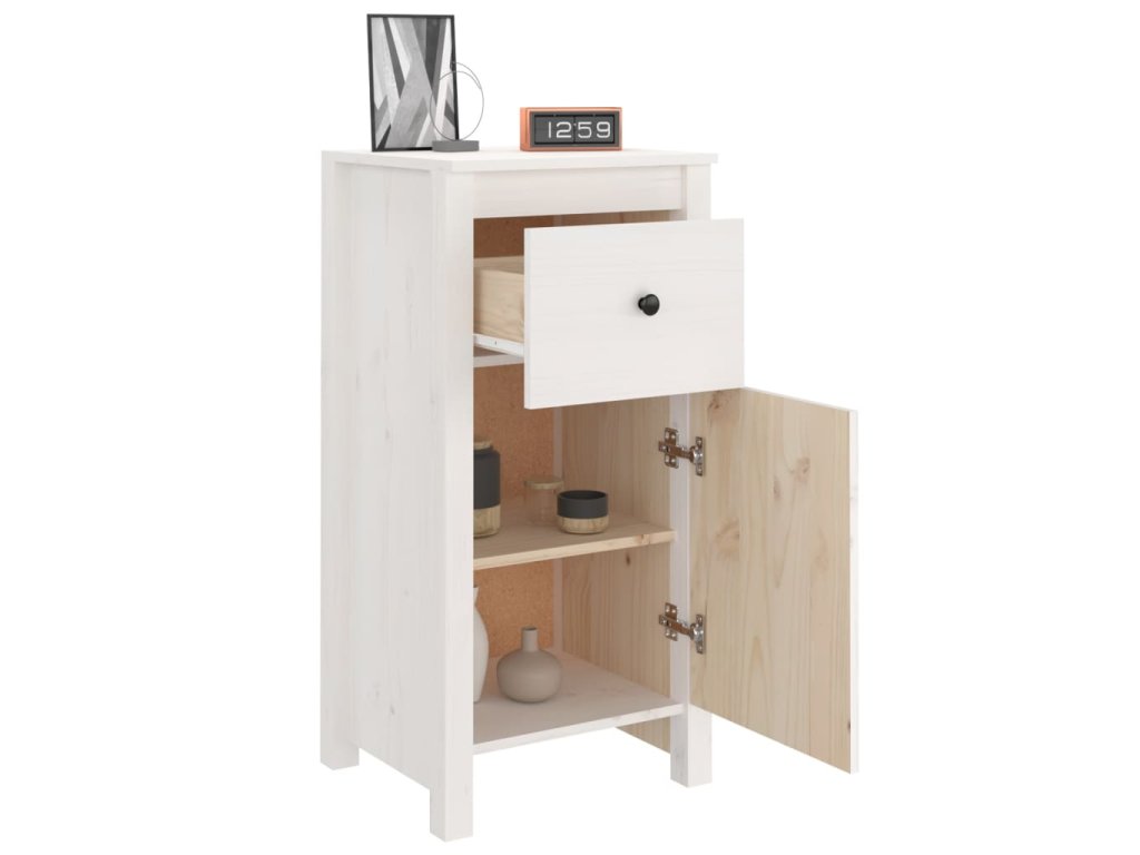 Příborník bílý 40 x 35 x 80 cm masivní borové dřevo 813756