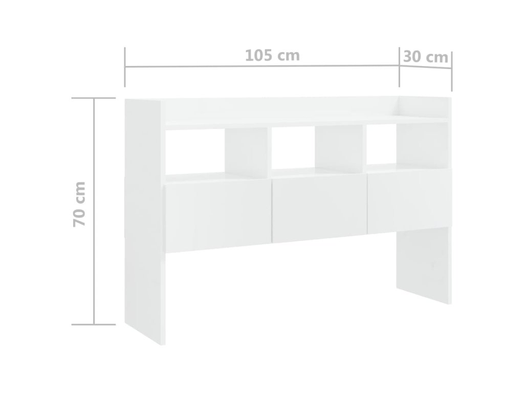 Příborník bílý s vysokým leskem 105x30x70 cm kompozitní dřevo 808383