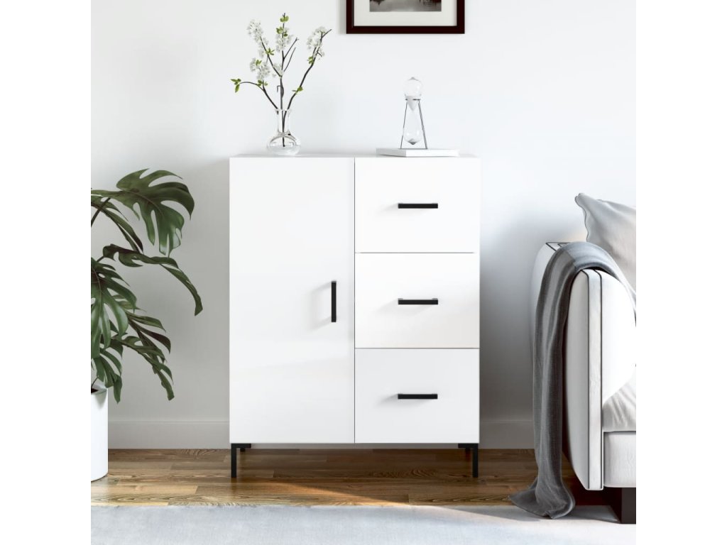 Příborník bílý s vysokým leskem 69,5x34x90 cm kompozitní dřevo 827918