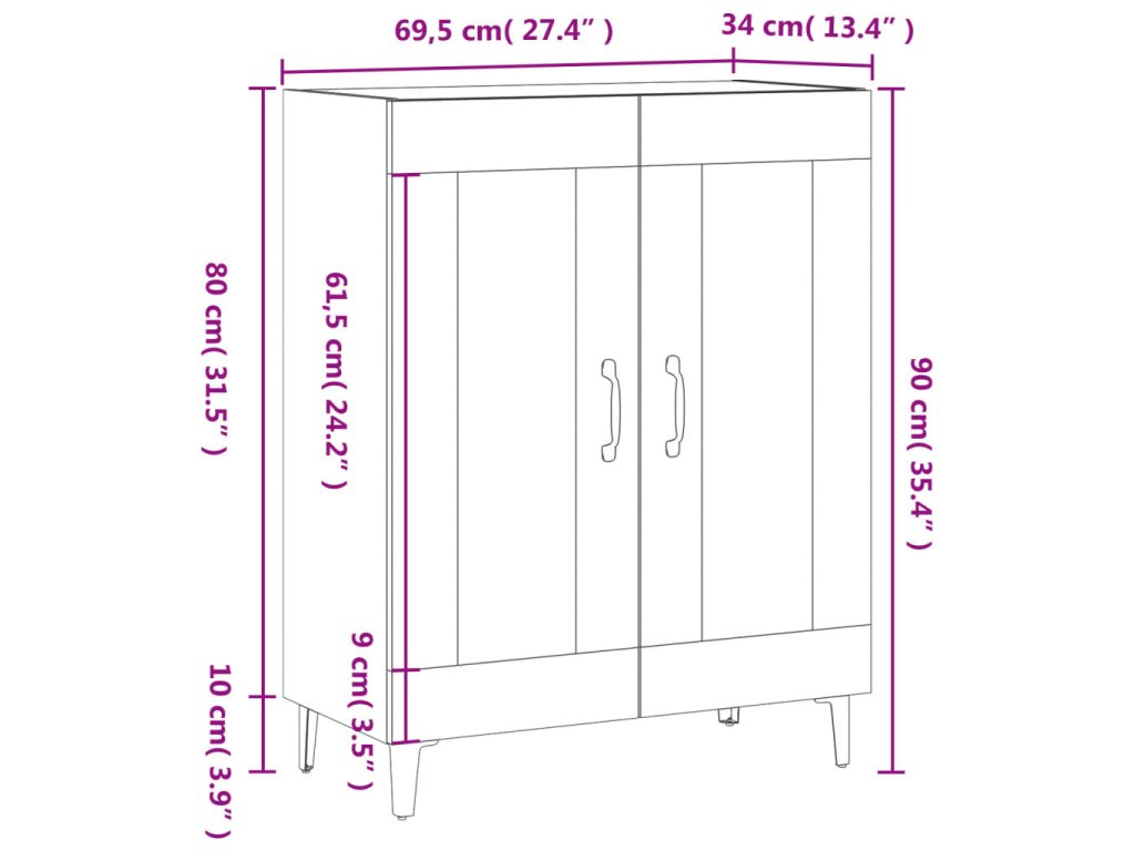 - Rozměry: 69,5 x 34 x 90 cm (Š x H x V)