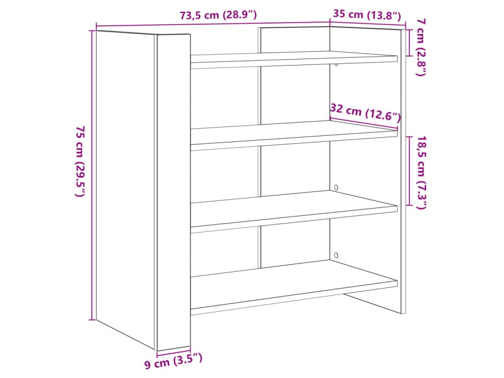 - Rozměry: 73,5 x 35 x 75 cm (Š x H x V)