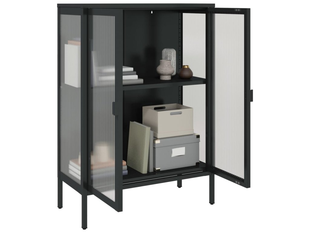 - Stabilní materiál: Rám skříňky je vyroben z práškově lakované oceli. Ocel je mimořádně tvrdý a pevný materiál. Zajišťuje pevnost a stabilitu. Práškové lakování vytváří na oceli ochrannou vrstvu proti opotřebení.