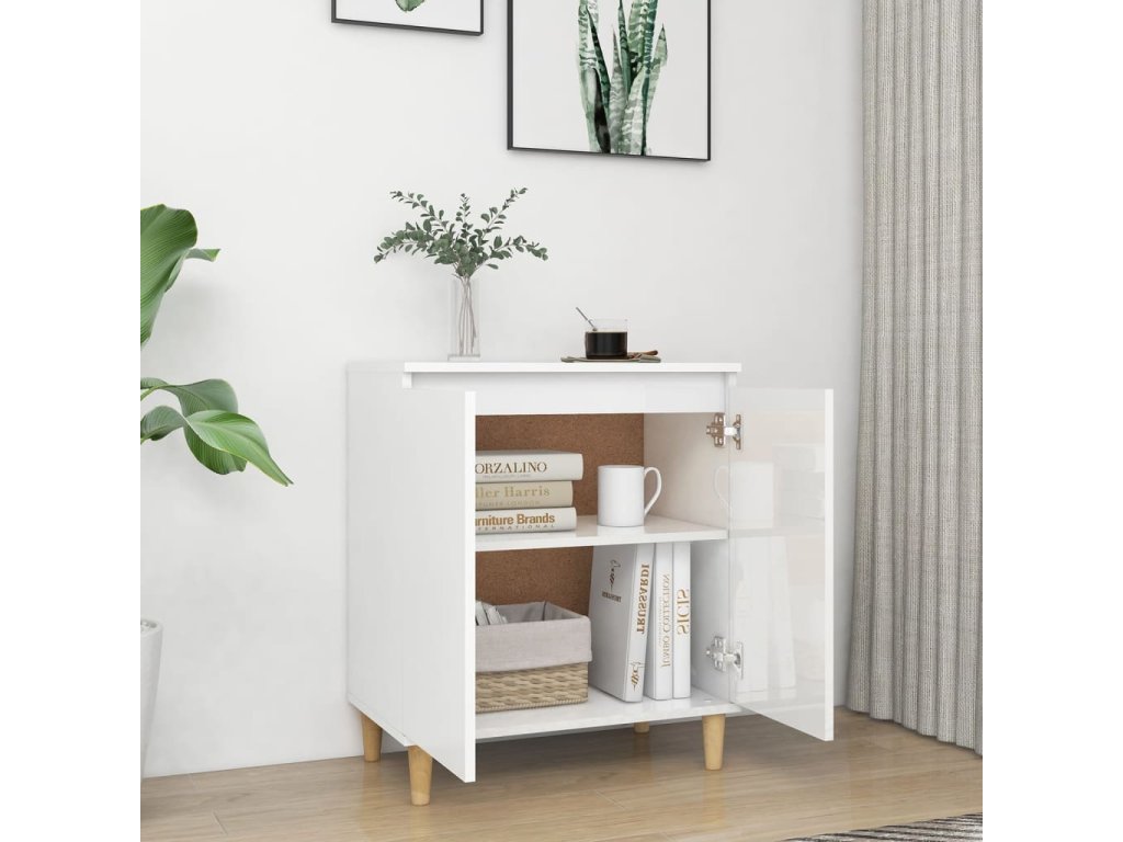 Příborník dřevěné nohy bílý lesklý 60x35x70 cm kompozitní dřevo 806073