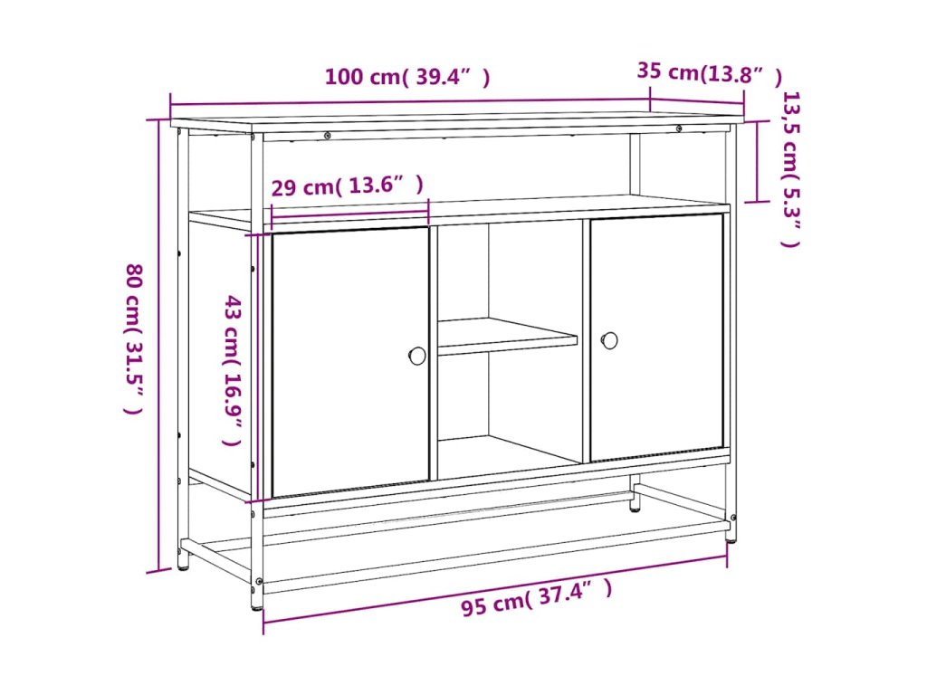 Příborník dub sonoma 100 x 35 x 80 cm kompozitní dřevo 835540