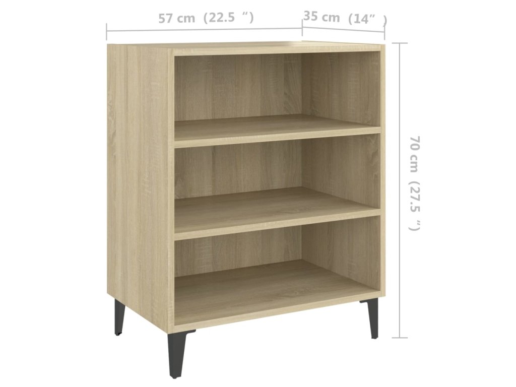 Skříňka na knihy je vyrobená z dřevotřísky, která jí zajišťuje pevnost, odolnost a dlouhou životnost. Kovové nohy zase zlepšují její stabilitu. Příborník disponuje 3 policemi, které poskytují spoustu úložného prostoru. Robustní horní deska je ideální pro vystavování dekorativních předmětů, fotorámečků nebo květináčů. Úložnou skříňku lze navíc snadno čistit vlhkým hadříkem.