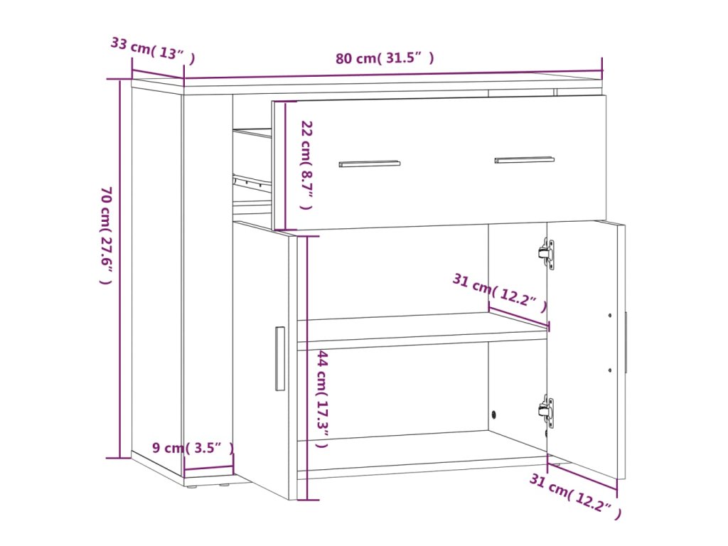 Příborník dub sonoma 80x33x70 cm kompozitní dřevo 816571