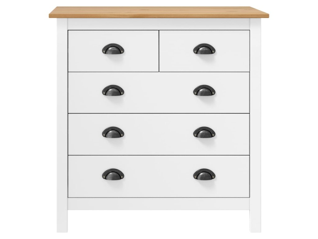 Kompaktní skříňka má 5 zásuvek s hladkým otevíráním, do kterých si můžete uspořádat různé drobnosti, které chcete mít na dosah ruky. Obdélníková horní část vám navíc poslouží k vystavení mís s ovocem nebo dekorativních předmětů, jako jsou fotorámečky nebo pokojové rostliny. Sestavení úložné skříňky je snadné.