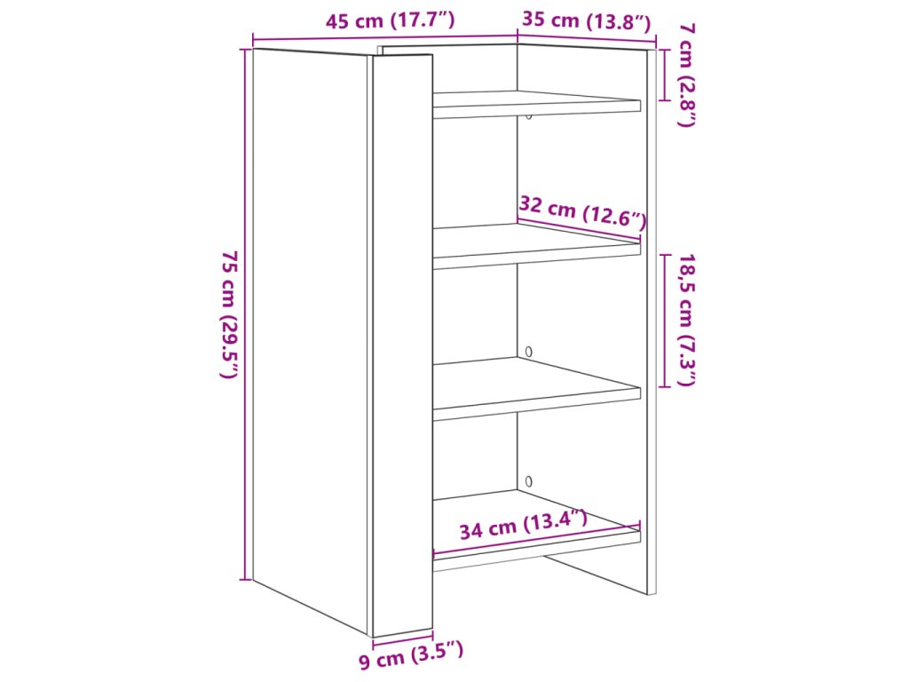 - Rozměry: 45 x 35 x 75 cm (Š x H x V)