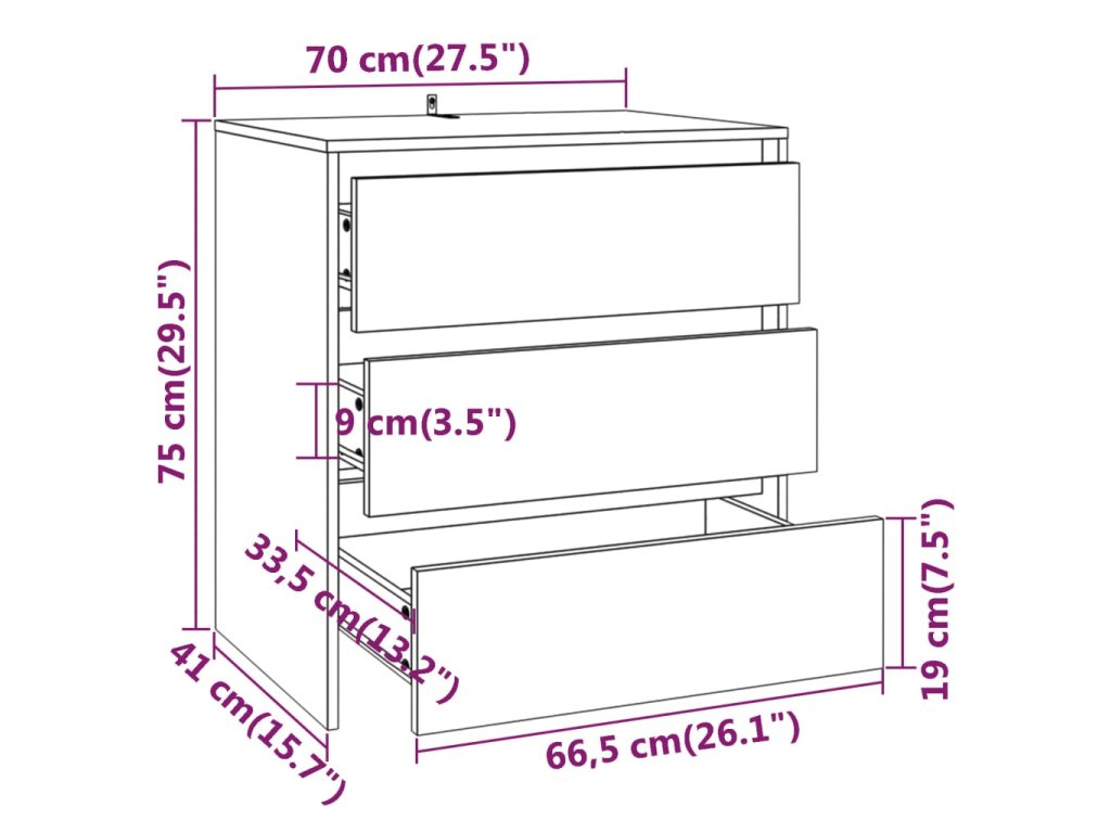 Skříňka se 3 zásuvkami poskytuje dostatek úložného prostoru, kde budete mít své každodenní nezbytnosti uspořádané a po ruce. Robustní horní deska je ideální pro vystavení dekorativních předmětů, fotorámečků a rostlin v květináčích. Úložnou skříňku lze navíc snadno čistit vlhkým hadříkem.
