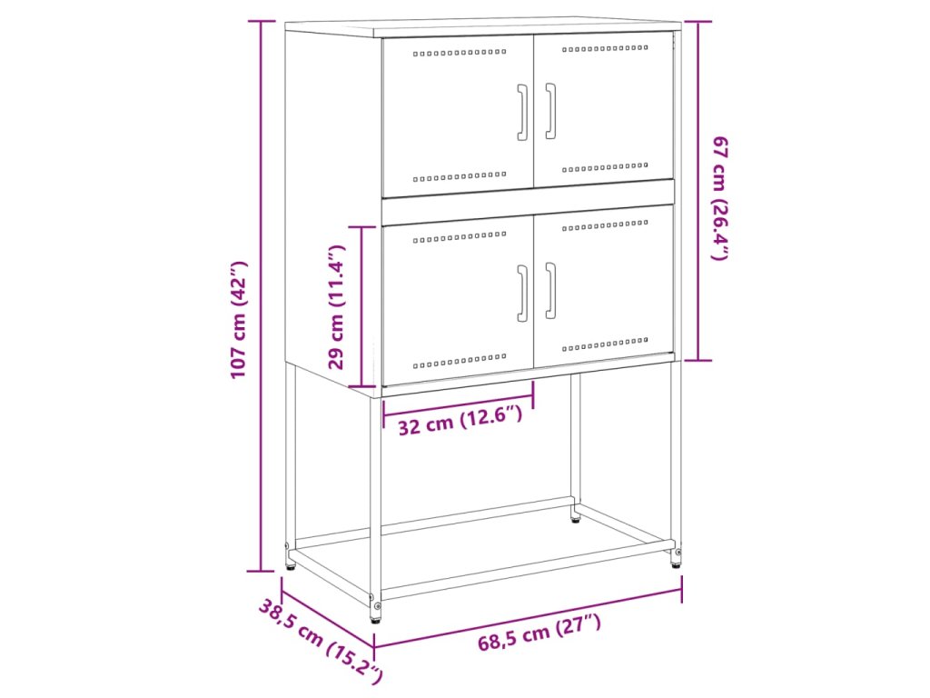 - Rozměry: 68,5 x 38,5 x 107 cm (D x Š x V)
