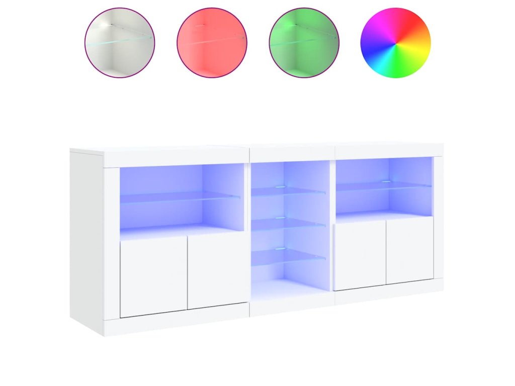 - RGB LED světla: Skříňka je vybavena zářivými RGB LED světly. Různé přizpůsobitelné nabídky vám umožní snadno změnit barvu světel nebo dokonce i nastavit světla tak, aby se přizpůsobila automaticky. Tato LED světla nejen podtrhují moderní vzhled příborníku, ale také mu dodávají na módním půvabu.