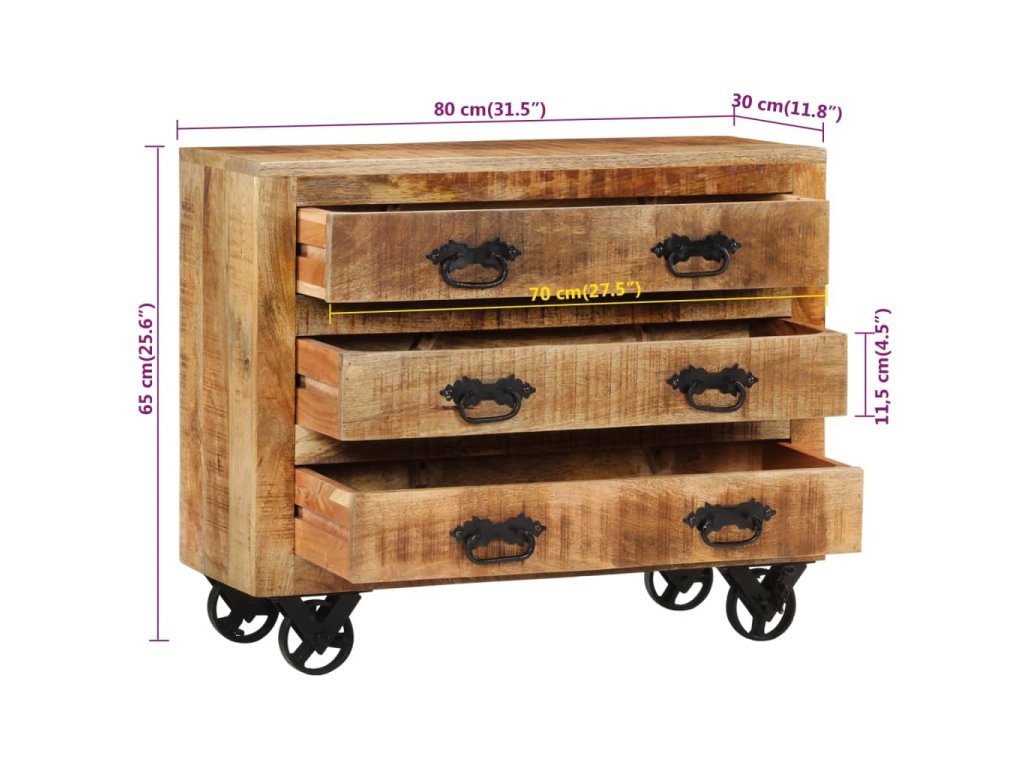 Příborník se 3 zásuvkami 80x30x65 cm masivní hrubý mangovník 351690