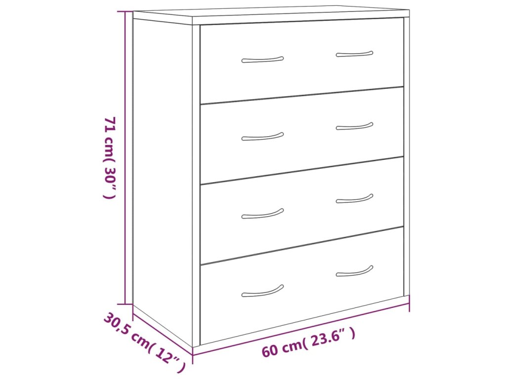 Příborník se 4 zásuvkami 60 x 30,5 x 71 cm hnědý dub 342582