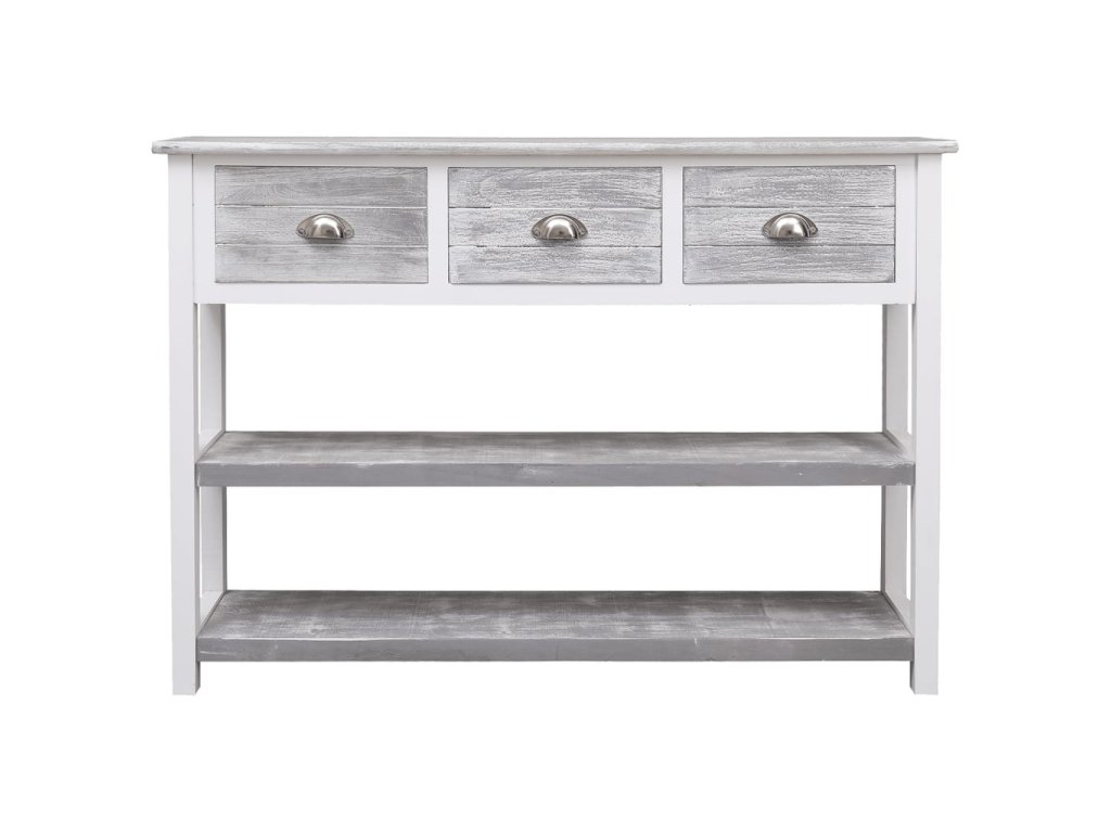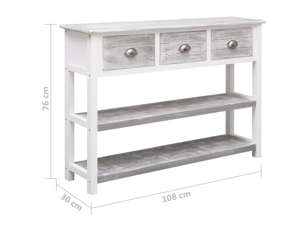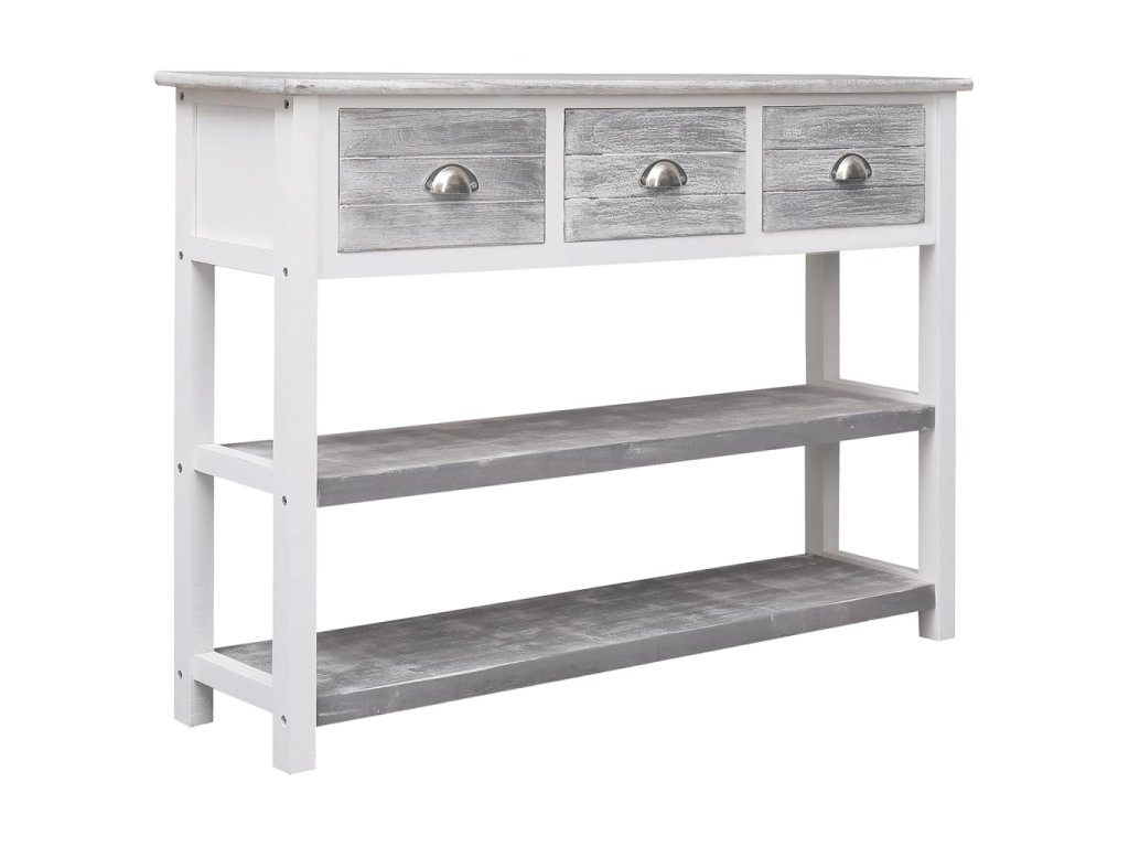 Příborník šedý s patinou 108 x 30 x 76 cm masivní pavlovnie 338543